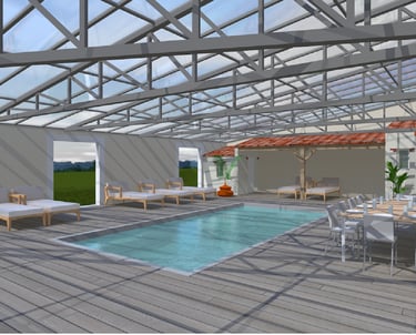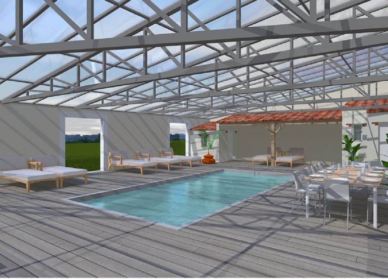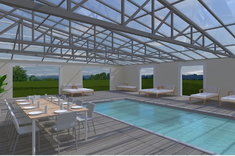 Cette piscine accessible aux Personnes à Mobilité Réduite dispose d’un fond mobile, permettant de moduler l’espace selon vos besoins et de le transformer en véritable lieu de réception.